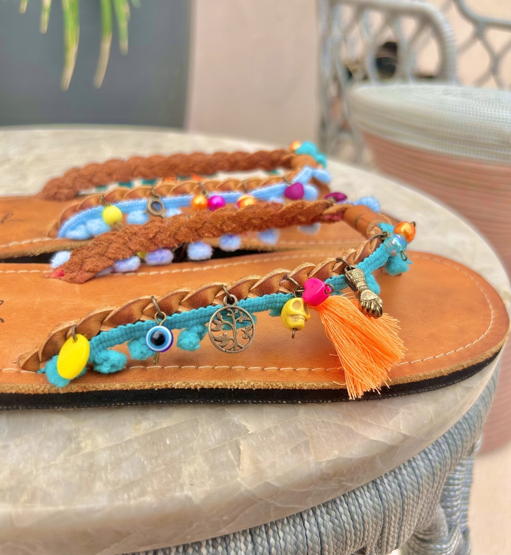 Rasteira Cos é a escolha perfeita para quem ama um estilo maximalista! Com uma base toda no azul, ela proporciona um lindo contraste com pingentes coloridos e de metais.
